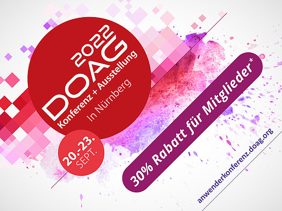 Zur großen DOAG Konferenz + Ausstellung 2022 in Nürnberg gibt es schon jetzt das On-demand-Ticket – mit 30% Rabatt für Mitglieder.