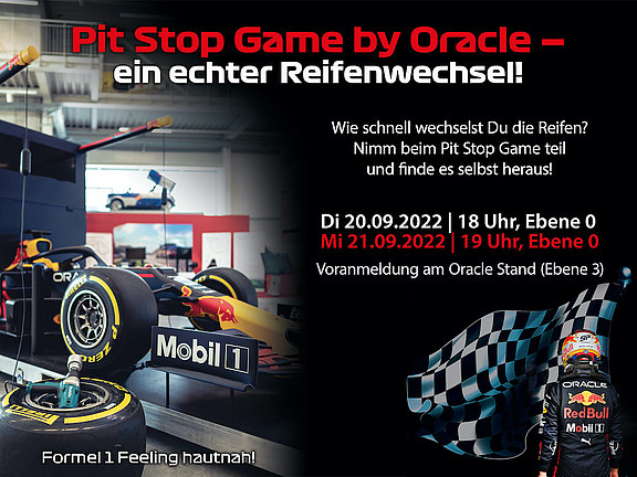 An einem echten Boliden kann auf der #DOAG2022 ein Boxenstopp mit Reifenwechsel simuliert werden. Wie schnell bist du?