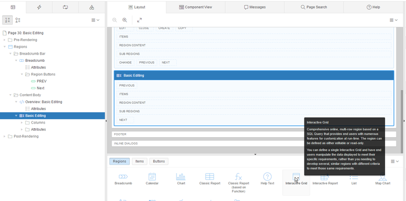 Seit der ersten Version von APEX gibt es tabellarische Formulare. Diese hatten aber einige Einschränkungen: Plug-Ins konnten nicht benutzt werden, eine APEX-Seite konnte nur ein Formular enthalten und Master-Detail-Detail-Formulare wurden nicht unterstützt. Insbesondere Anwender von Oracle Forms, die auf moderne HTML5 Anwendungen mit APEX und Geschäftslogik in der Datenbank setzen wollen, waren von diesen Einschränkungen sehr stark betroffen. Das neue Interactive Grid hebt all diese Beschränkungen auf. Es wird wie ein interaktiver Bericht mit einer SQL-Abfrage als Datenquelle erzeugt.