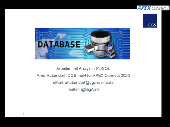 APEX connect 2020: "Arbeiten mit Arrays in PL/SQL"