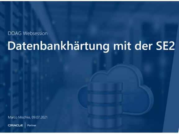 Oracle bietet eine Reihe von Möglichkeiten zum Schutz der Daten. Dazu zählen Verschlüsselung auf verschiedenen Ebenen und Möglichkeiten zur Härtung von Datenbanken. Einige der Features sind in der Standard Edition 2 verfügbar, andere nicht. Marco Mischke stellt Security Patches, Netzwerk-Verschlüsselung, Datenbank-Einstellungen, Privilege Management und Passworte in Skripten sowie das Security Assessment Tool vor.