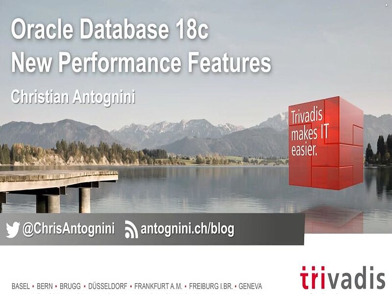 Mit jeder neuen Version der Oracle-Datenbank werden eine Reihe von Funktionen zur Leistungssteigerung eingeführt. Die neueste Version 18c bildet keine Ausnahme von dieser Regel. Christian Antognini, Principal Consultant und Partner bei Trivadis, überprüft in dieser Webinar-Aufzeichnung vom 10. August 2018 aus praktischer Sicht die neuesten Erweiterungen für Funktionen und berücksichtigt dabei insbesondere das physische Datenbankdesign, die Abfrageoptimierung, die parallele Ausführung und die In-Memory-Option.