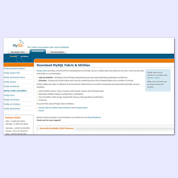 Das Open-Source-Framework MySQL Fabric, das die Verwaltung von MySQL-Server-Farmen erleichtern soll, steht zum Download bereit. Das Tool ist Teil von MySQL Utilities 1.4.3. Wird MySQL Fabric mit MySQL Replikation für Hochverfügbarkeit genutzt, so erkennt die Software Fehler und Ausfälle automatisch.