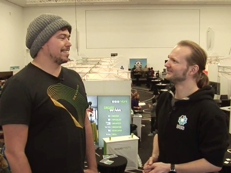 Bruno Borges (Principal Developer Advocate for Java at Microsoft) zeigt sich im Gespräch mit Christoph Engelbert (Java Consultant) begeistert von JavaLand 2018: In seinen Augen bietet die Veranstaltung einen geeigneten Ort für Kreativität und humorvollen Umgang miteinander.