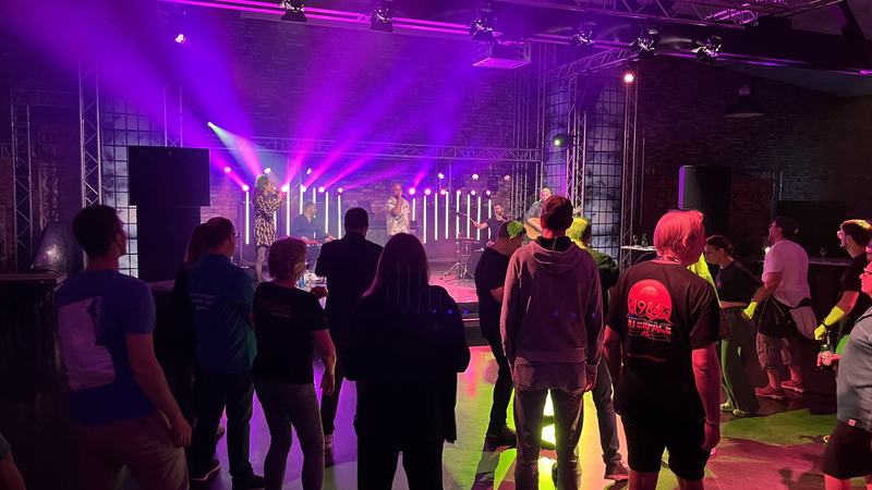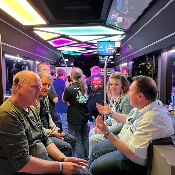 Ein großes Highlight war die allseits beliebte Summer Night am zweiten Abend des Festivals, zu der auch gleichzeitig die zweite deutsche Partie der Fußball-Europameisterschaft der Männer 2024 stattfand. Das Public Viewing wurde durch den Tourbus möglich, mit dem Monate vor dem Festival die Highway to CloudLand veranstaltet wurde. Bei kühlem Bier und Softgetränken nach Wahl feuerten die Teilnehmerinnen und Teilnehmer das Team ihrer Wahl an den Bildschirmen vor und im Bus an. Die zweite Hälfte der Partie konnte zusätzlich in der Eventlocation auf der großen Leinwand bei einem köstlichen Barbecue bestaunt werden. Nach dem Essen folgte die Community Keynote des Programmkomitees, die über die nervenzerreibenden Hürden und witzigen Kuriositäten der Highway-to-CloudLand-Tour erzählten und schließlich noch ihre Teilnahme auf dem Macher-Festival mit einem Gastauftritt der Real Life Guys verkündeten. Ab 21 Uhr wurde es, wie es sich für ein Festival gehört, erneut musikalisch: Jean-Pierre Derinbay and Friends ft. Vanessa Iraci und Juan Daniél brachten die Leute mit Live-Musik aus Pop, Rock, Soul, Hip Hop und Latin Pop zum Tanzen, Singen und Feiern. Auch nach dem Live-Auftritt legten JP and Friends auf und animierten die Besucherinnen und Besucher zum Spaß haben. Allerdings war der Abend auch danach noch lange nicht vorbei: Wie elektrisiert ging auf dem Parkplatz beim DOAG-Tourbus die Party bis in die frühen Morgenstunden weiter.
