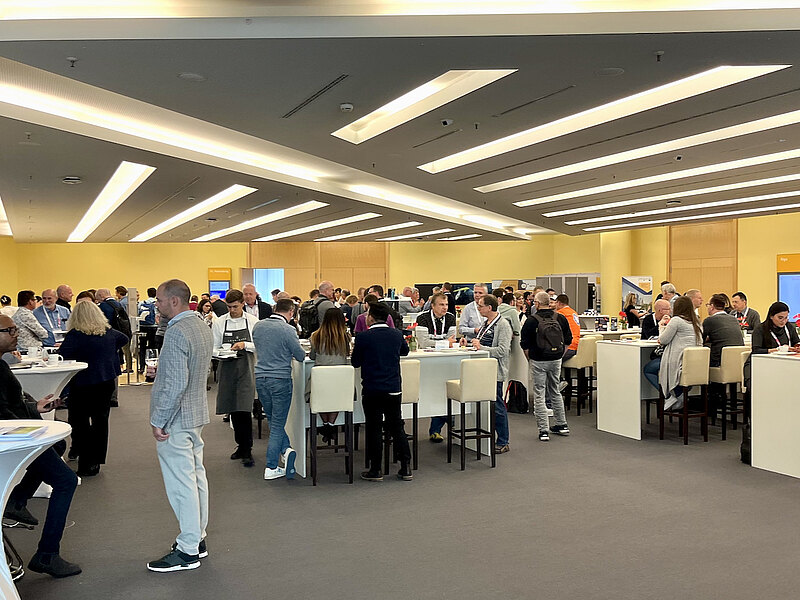 So kamen zum Warm-up die Veranstalter mit den Besuchern und Ausstellern zu einem gemeinsamen Business Lunch am Montagmittag von 13 bis 14 Uhr im Restaurant Vasco da Gama auf der Ebene 1 des NCC zusammen. Danach sollte es direkt auf Ebene 2 weiter gehen. Hier lagen die drei Vortragsräume des Events namens St. Petersburg, Riga und Budapest (Anm. der Redaktion: Die seit Jahrzehnten bestehende Namensgebung der Räume im NCC steht nicht im Zusammenhang mit der aktuellen politischen Situation in Europa) nur einen Katzensprung voneinander entfernt – sie waren durch das großzügige, warm beleuchtete "Foyer St. Petersburg" inklusive Kaffeebar und Snackstation, das zum kommunikativen Dreh- und Angelpunkt werden sollte, miteinander verbunden.