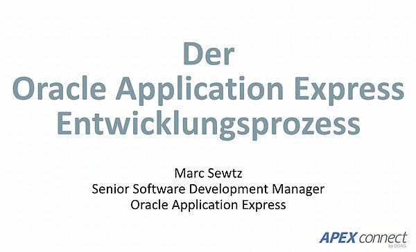 Ein Großteil der Produktentwicklung von Oracle Application Express (APEX) findet in APEX selbst statt. Doch welche anderen Werkzeuge und Prozesse kommen noch zum Einsatz und wie sieht der Entwicklungsprozess konkret aus? Auf der APEX Connect 2015 lieferte Marc Sewtz einen spannenden Einblick in die Prozesse bei Oracle. Sehen Sie den Vortrag in voller Länge.