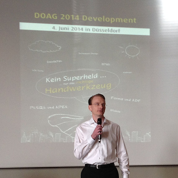 Das Plenum der DOAG 2014 Development ist fast bis zum letzten Platz gefüllt. Anthony Rayner hält seine Keynote vor rund 160 Teilnehmern über die nächste Version von Oracle Application Express (APEX). Das Fazit von Rayner: Entwickler werden mit APEX 5.0 noch schneller programmieren. Für eine Konferenz, die Rapid Application Development (RAD) als Motto hatte, hätte das Schlusswort kaum passender sein können.