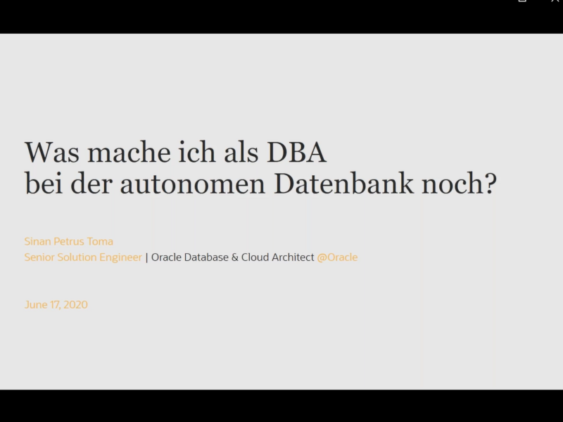 DOAG 2020 Datenbank: "Was mache ich als DBA bei der autonomen Datenbank noch?"