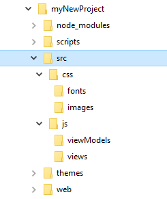 Dadurch wird ein Unterverzeichnis mit dem von Ihnen angegebenen "Anwendungsnamen" erstellt. Anschließend werden unter Verwendung einer oder mehrerer "App Shells" als Vorlage alle erforderlichen Dateien für die Oracle-JET-Anwendung installiert und konfiguriert. In unserem Beispiel wird eine App Shell verwendet, die sowohl mit Desktop- und Mobil-Browsern funktioniert. Wenn alles ordnungsgemäß durchläuft und der Generator fertig ist, sehen Sie eine Anzeige, die der verlinkten Abbildung entspricht.