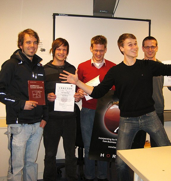 Die Studierenden aus unterschiedlichen Studienrichtungen, wie Informationswirtschaft, Business Information Technology oder auch Wirtschaftsinformatik schlüpfen in Rollen, wie sie auch in realen Unternehmen anzutreffen sind, nehmen die Geschäftsprozesse der verschiedenen Standorte auf und stimmen sie aufeinander ab. Für einen Tag sind sie Fachlicher Berater, Fachkräfte für Qualitätssicherung, Fachexperte Modellierung oder Prozess-Integrator. Die Bestellplanung und -abwicklung, Fertigung und den Verkauf bilden sie in grafischen Modellen mithilfe der Software Horus ab. Diskutiert wird im Chat, während die übergreifenden Prozesse im Wiki festgehalten und optimiert werden. Web 2.0 lässt grüßen.