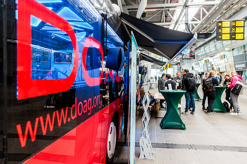 Viele JavaLand-Teilnehmerinnen und -Teilnehmer hatten dato noch gar nichts vom neuen DOAG-Bus gehört und zeigten sich begeistert vom Innendesign und vom Konzept einer Roadshow, die zum Thema IT und Netzwerken über die deutschen Autobahnen und Landstraßen rollt, um zu den Leuten, den Interessengruppen, Meetups und Usergroups zu kommen. So bietet der aktuelle Tourplan bereits 13 Stationen, weitere sind durch die DCNC in Planung und werden demnächst spruchreif.