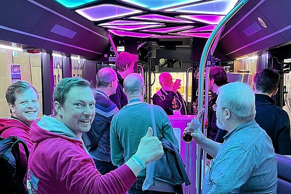 Auch die Mitglieder des iJUG ließen es sich nicht nehmen, am Abend des ersten Konferenztags ein Erinnerungsfoto vor dem Tourbus zu machen. Das eine oder andere Mitglied wird man sicher auf einem der Tourstopps in Deutschland treffen, Pizza und Bier inklusive. Los geht's am Montag, den 15. April in Nürnberg. Hier laden Frank Prechtel und seine AWS User Group Nürnberg zu gleich zwei Impulsvorträgen zum Thema Cloud und Künstlicher Intelligenz samt Pizza, Bier und Party ein. Die Location wird von den Cloudpunks auf dem Nürnberger AEG-Gelände, Fürther Str. 244b, bereitgestellt, als Speaker sind Dr. Benjamin Linnik und Sebastian Maischl am Start. Von Dienstag, 16. April bis Freitag, 19. April folgen vier weitere Termine mit den Stationen Würzburg, Ingolstadt, München und Rosenheim.
