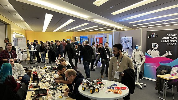 Das Programm wird auch heute von einer kleinen Ausstellung und dem KI Lab begleitet, das zum Testen und Networking einlädt. Es wird sich ausgetauscht, gelacht und ausprobiert: An einer Ecke werden kleine Roboter gebaut, die später in einem Hebocon-Turnier gegeneinander antreten, an einer anderen Ecke kann man mit einem KI-Android plaudern, dazwischen können Deepfakes bestaunt werden, die in Echtzeit generiert werden – überall ist etwas los.
