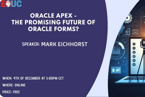 Die EMEA Oracle Usergroup Community (EOUC) veranstaltet am 4. Dezember 2023 um 17:00 Uhr ein kostenloses Webinar zu Oracle APEX und Forms.