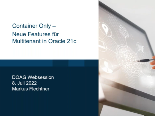 Das sechsköpfige Redaktionsteam von Oracle Deutschland hat wieder Neuigkeiten rund um die Datenbank zusammengetragen, die dieses Mal von Wolfgang Thiem in einem ca. 20 minütigen Video präsentiert werden.