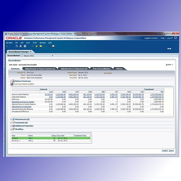 Angaben von Oracle zufolge können Unternehmen mit dem neuen Account Reconciliation Manager-Modul den Prozess bei Finanzabschlüssen vereinfachen und Audit-Risiken und damit verbundene Kosten minimieren.
