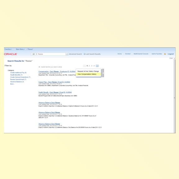 Neben der neuen Benutzeroberfläche hat Oracle vor allem an einer Erweiterung der Funktionalitäten gearbeitet. Neu in dem Release ist unter anderem die neue, globale Freitextsuche. Diese ermöglicht eine projekt- und instanzenübergreifende Suche innerhalb von PeopleSoft 9.2. Mit Secure Enterprise Oracle profitieren Anwender von über 120 Indizes, die das Suchen und Navigieren innerhalb der Applikation einfacher gestalten.