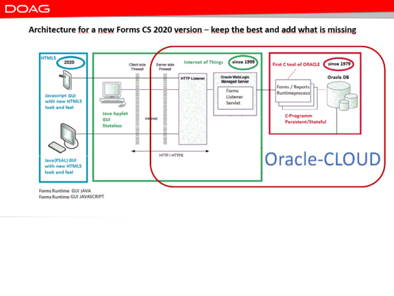 Auf Anregung von Frank Hoffmann und der DOAG wurde schon auf dem letzten Forms Day am 21. Februar 2019 in München angekündigt, als Initiative zur Modernisierung der Oracle-Forms-Technologie eine Petition an Oracle zu richten. Die Befürworter dieser Petition fordern von Oracle eine zeitgemäße Modernisierung der Laufzeitumgebung von Forms und die Möglichkeit einer Cloud- und mobilfreundlichen Deploymentoption (JavaScript), um die entwickelten Software-Produkte zeitgemäß entwickeln und wahlweise auf Desktop oder Mobilgeräten verteilen zu können.