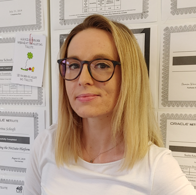 Katharina Schraft ist seit 2010 bei der PROMATIS software GmbH am Hauptsitz in Ettlingen (TechnologieRegion Karlsruhe) tätig und hat ihren Schwerpunkt in der ERP-Beratung mit Fokus auf Finance gelegt. Seit 2018 ist sie Vice President und Leiterin der Business Unit NetSuite und berät Kunden unter anderem in strategischen Buchhaltungs- und Compliance-Fragestellungen. In ihrer Freizeit hält sie sich gerne in der Natur auf, am Liebsten mit Freunden und mindestens einem Hund an ihrer Seite.