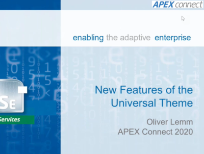Oliver Lemm stellt bei der APEX connect 2020 [Online] die neuen Features der APEX-Benutzerschnittstelle vor.