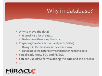 Heli und Marko Helskyaho zeigenauf der APEX connect 2019 diverse Möglichkeiten für APEX als Visualisierungsschnittstelle für ML in der Datenbank.