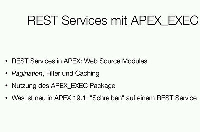 Dietmar Aust stellt einige der neu von Oracle ORDS hinzugefügten Funktionen der vergangenen Releases auf der APEX connect 2019 vor.
